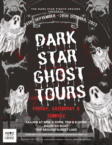 Discover phantom ships, wicked witches, and secret murders on this haunted trip along Sunset Lake. Welcome aboard, Dark Star Ghost Tours! These tales inspired by the history and legends of the Wildwoods are a perfect family trip for the Halloween season. This hour-long voyage includes a sunken ship, face-painted jack-o-lanterns, and some treats, all wrapped up with original ghost stories written by an award-winning playwright and Dark Star Pirate. Join us if you dare.